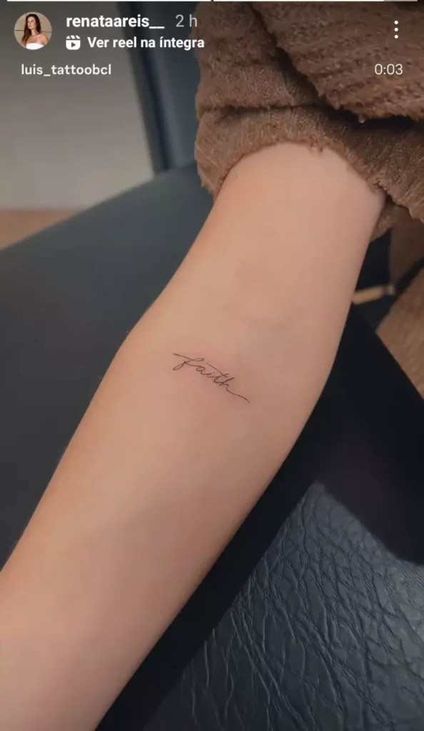 A ex-concorrente tatuou a palavra ' 'faith' [fé, em português]. Recorde-se que a jovem teve uma relação amorosa com Maycon Douglas durante alguns meses.