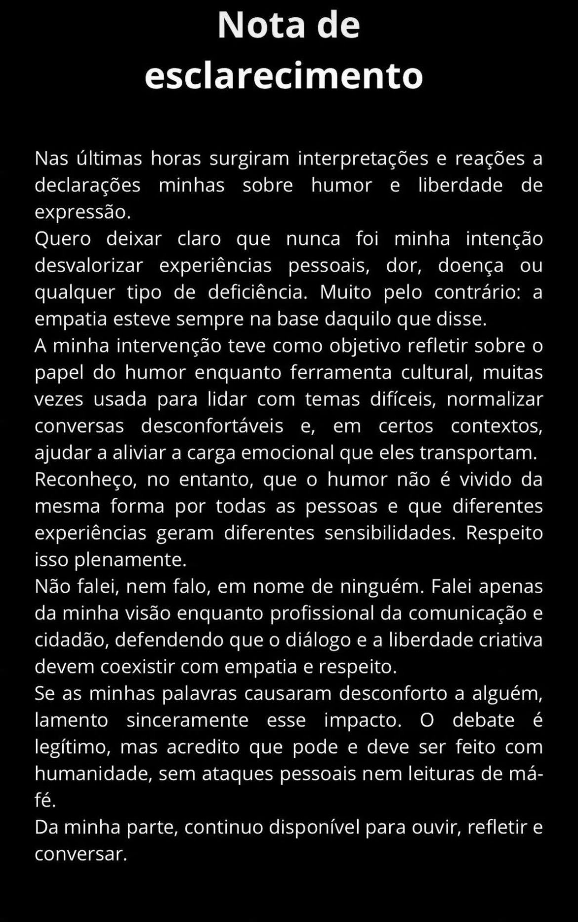 Cândido Pereira lançou um comunicado na sua página de Instagram