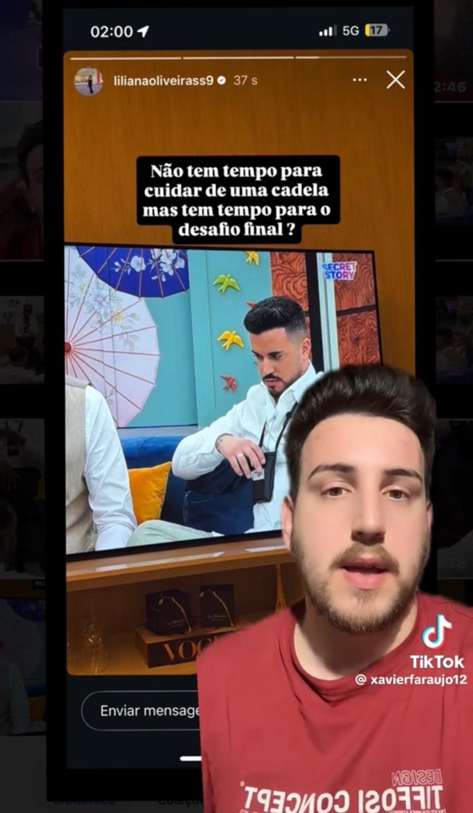 O criador de conteúdos Xavier Araújo denunciou uma publicação feita e apagada pela ex-concorrente sobre Pedro. “Não tem tempo para cuidar de uma cadela, mas tem tempo para o Desafio Final?”, escreveu.